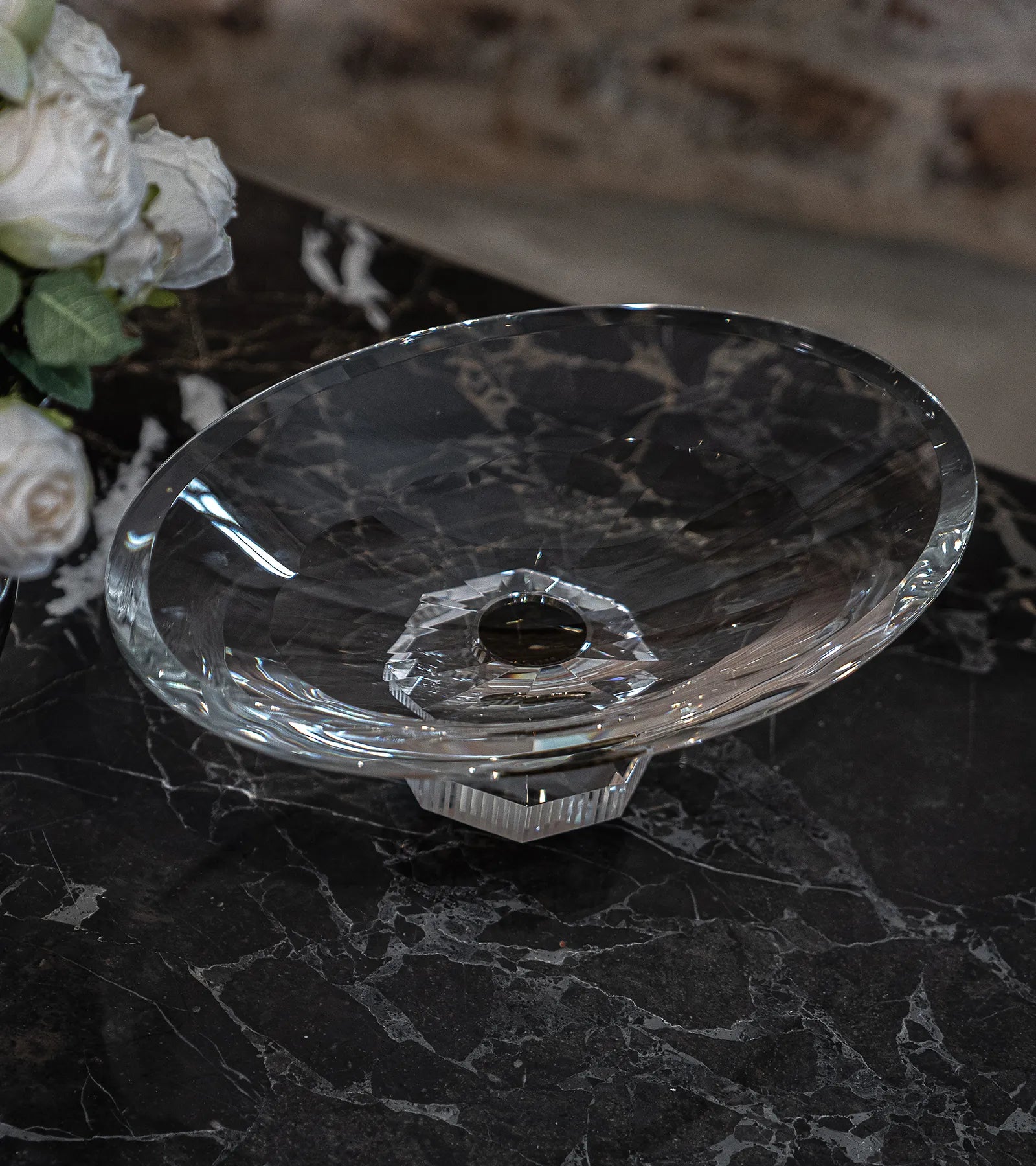 Sculptural and serene, the Chelsea Bowl sets the stage for refined living. Its generous, clear crystal form rests on a faceted base with intricate rifled detailing, creating a delicate interplay of light and reflection. A slender band of crystal in brown hues gracefully defines the transition between base and bowl, adding a subtle layer of visual intrigue. Whether used as a functional piece or displayed as a centre piece, the Chelsea Bowl brings quiet sophistication to any setting.